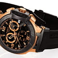 TISSOT - мужские кварцевые наручные часы Корпус этих часов крупного размера (453 мм) и выполнен из нержавеющей стали L316 с PVD-покрытием цвета розового золота Модель имеет устойчивое к царапинам сапфировое стекло, ремешок из натурального каучука черного цвета, черный циферблат Калибр механизма: ETA G10211 Класс водозащиты: 100 м / 10 АТМ (разрешается плавание и ныряние без акваланга) Дополнительные функции и особенности: отображение числа, хронограф (секундомер), тахиметр
