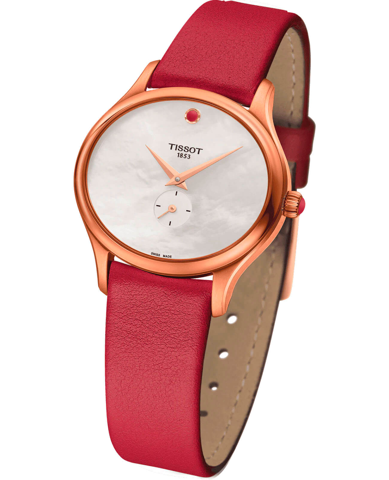 Перламутровый циферблат завораживает мягкими переливами, часы выглядят больше не как прибор для измерения времени, а как стильное украшение. Внутри прочного корпуса из нержавеющей стали с PVD-покрытиемPVDУльтратонкое покрытие наносится в технике вакуумного напыления, сочетает в себе нитрид титана особой прочности со слоем золота или оксида хрома. Несёт в себе декоративную или защитную функцию. расположен кварцевый механизм ETA 980.153, отличающийся высокой точностью хода. Кабашон на заводной головке. Миниатюрный счётчик секунд. Сапфировое стекло. Функция EOLEOLПредставляет собой систему, уведомляющую владельца часов о необходимости замены элемента питания. За 2 недели до полного разряда батарейки секундная стрелка перестаёт ходить чётко и начинает перепрыгивать на 3-4 деления.. Габариты: 28 x 31,4 x 6,6 мм.