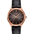 Модель в классическом исполнении точно должна быть в коллекции истинной леди. Дополнительное очарование придаёт сочетание минималистичного антрацитового циферблата и чёрного ремешка из натуральной кожи, поверхность которого сделана под кожу крокодила. Корпус сделан из 18-каратного розового золота18-каратное золотоОбозначение по каратной системе пробирования, оно показывает, сколько драгоценного металла содержится в изделии. 18 карат - в составе 75% чистого золота, соответствует 750 пробе.