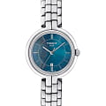 Внимание сразу привлекает переливающийся перламутровый циферблат. Аксессуар в классическом стиле выполнен из стали, материал характеризуется долговечностью и устойчивостью к царапинам и повреждениям. Наручные часы работают за счёт кварцевого механизма ETA F03.111. Функция EOLEOLПредставляет собой систему, уведомляющую владельца часов о необходимости замены элемента питания. За 2 недели до полного разряда батарейки секундная стрелка перестаёт ходить чётко и начинает перепрыгивать на 3-4 деления. уведомит об окончании срока службы батарейки. Водонепроницаемость 50 метров. Апертура даты. Габариты: 26 x 26 x 7 мм.