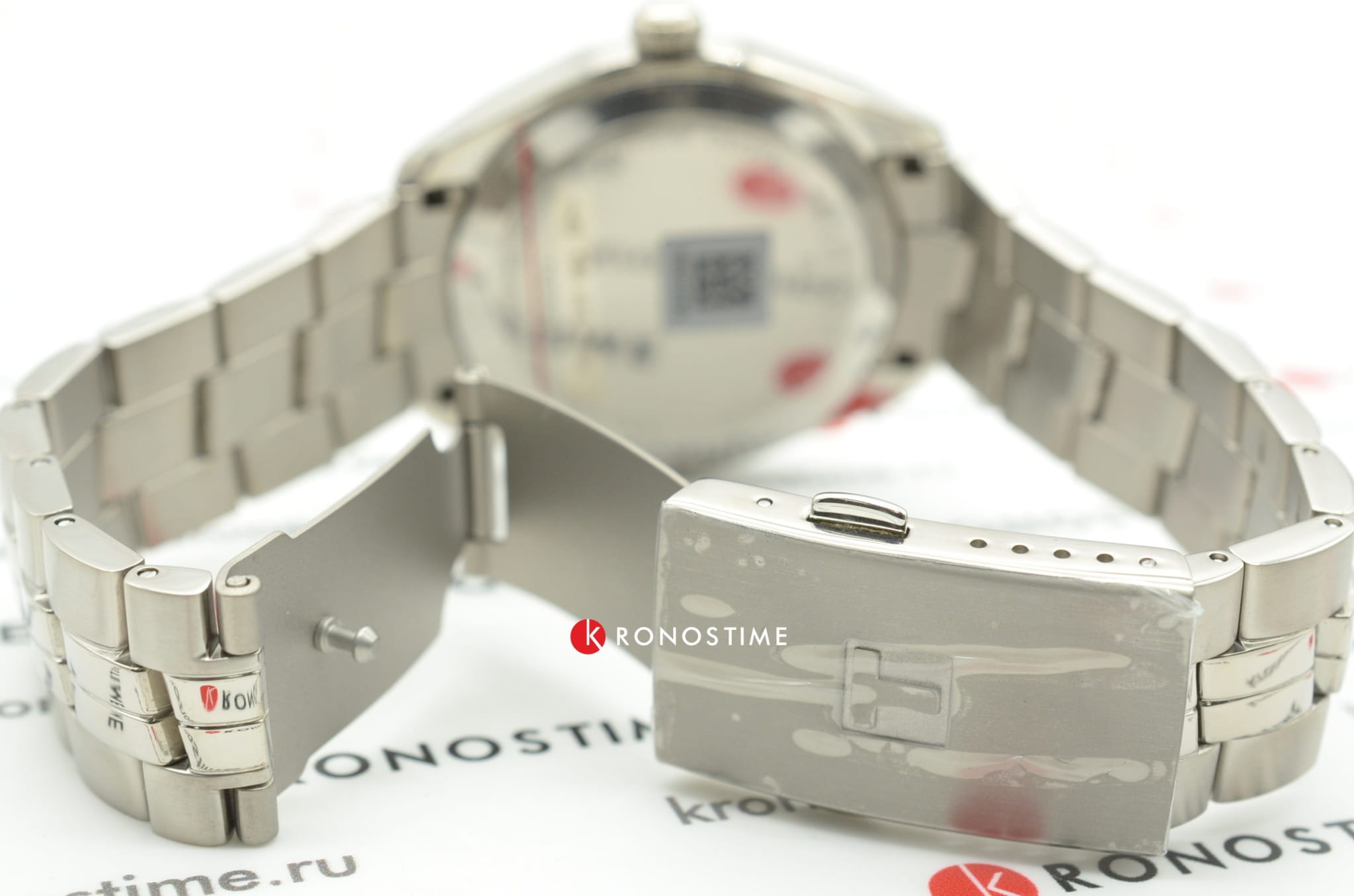 Белые часовые метки и стрелки чётко выделяются на синем циферблате, облегчая читаемость показателей. Наручные часы выполнены из титана, материал отличается долговечностью и не вызывает аллергии. Кварцевый калибр ETA 955.112. Водостойкость 100 метров. Прочное сапфировое стекло. Индикатор разряда элемента питания. Окошко даты. Габариты: 39 x 39 x 9 мм.