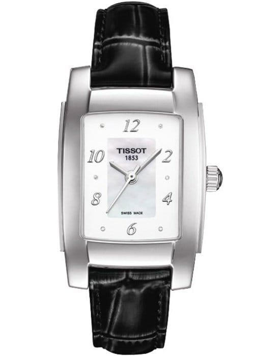 TISSOT T0733101611600 T-Trend T10 Quartz - женские кварцевые наручные часы Корпус этих часов небольшого размера (254 мм) и выполнен из нержавеющей стали L316 металлического цвета Модель TISSOT T0733101611600 T-Trend T10 Quartz имеет устойчивое к царапинам сапфировое стекло, ремешок из натуральной кожи черного цвета, белый циферблат Циферблат украшен 6 бриллиантами Калибр механизма: ETA F03111 Класс водозащиты: 30 м / 3 АТМ (защита от брызг и случайных капель) Дополнительные функции и особенности: нет Полная заводская комплектация TISSOT: оригинальные часы, фирменная коробка, инструкция, сервисная книжка, роман о часовой фабрике, миникаталог, замшевый фирменный чехол черного цвета для хранения и/или переноски часов, кассовый и товарный чеки Международная гарантия 2 года Производство и сборка: Швейцария