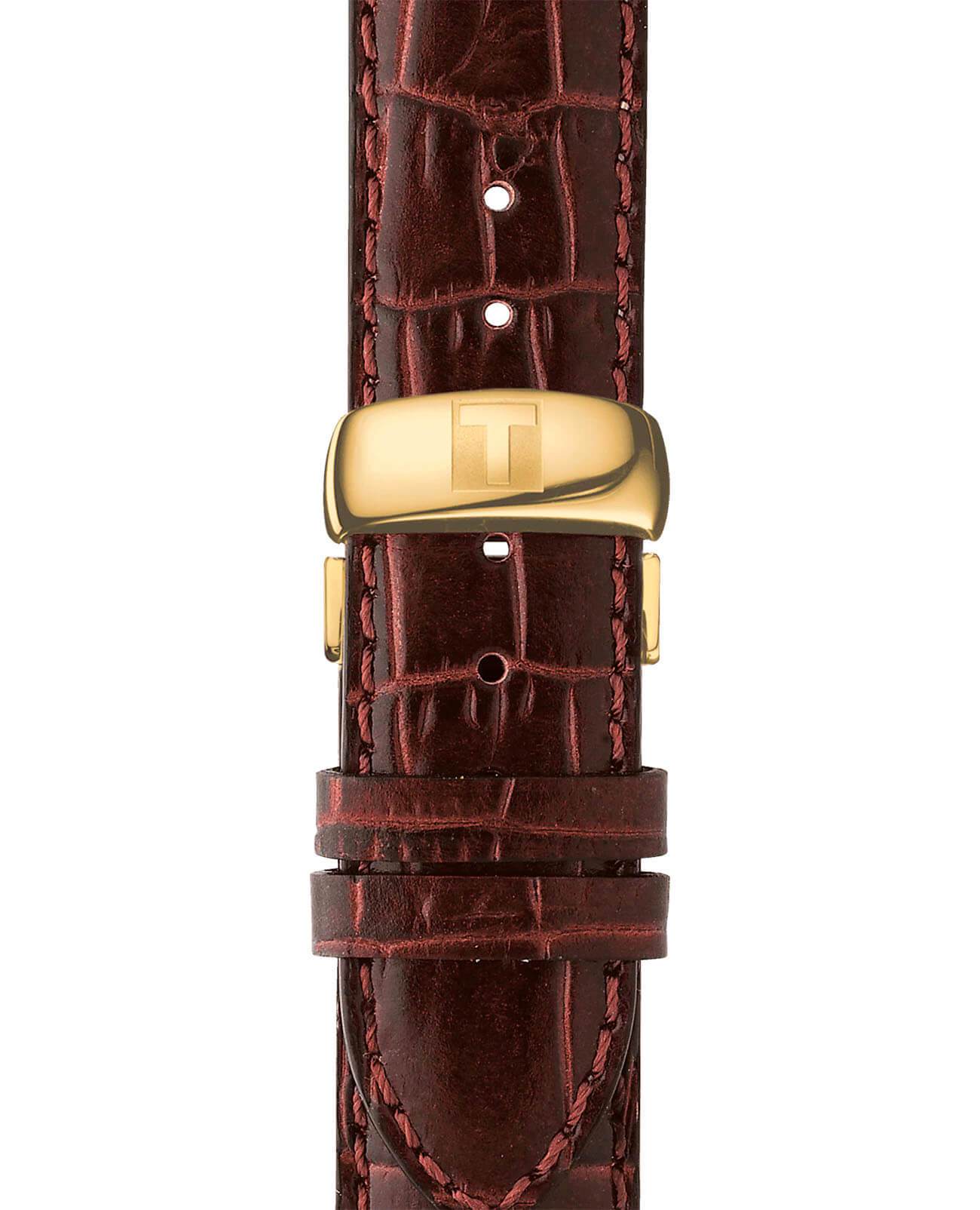 Наручные часы станут идеальным дополнением для делового или повседневного образа, дизайн продуман до мелочей. Светлый циферблат с характерным узором дополнен римскими цифрами в стиле ретро, в качестве главного украшения используется 8 бриллиантов цвета Top Wesselton в 0,04 карат. Стальной корпус имеет золотистое PVD-покрытиеPVDУльтратонкое покрытие наносится в технике вакуумного напыления, сочетает в себе нитрид титана особой прочности со слоем золота или оксида хрома. Несёт в себе декоративную или защитную функцию.. Автоматический калибр ETA Powermatic 80Powermatic 80Эксклюзивный калибр от швейцарской компании ETA с увеличенным запасом хода до 80 часов за счёт удлинённой заводной пружины. Характеризуется улучшенной системой спуска со сниженным трением. с 80-часовым запасом хода. Стекло из сапфира. Коричневый ремешок из натуральной кожи. Габариты: 39,3 x 39,3 x 9,8 мм.
