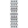 Уникальностью модели является характерный узор в виде мельчайших букв "Т", расположенных в шахматном порядке. Винтажный тон придают римские цифры. Изысканный аксессуар оснащен кварцевым механизмом с высокой точностью хода. Нержавеющая сталь. Водостойкость 50 метров. Сапфировое стеклоСапфировое стеклоПрочный и надёжный материал из кристалла сапфира синтетического происхождения, характеризующийся особой твёрдостью и устойчивостью к царапинам и повреждениям.. . Окошко даты.