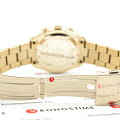 Стильный перламутровый циферблат инкрустирован 12 бриллиантами цвета Top Wesselton, роскошные переливы завораживают и приманивают взгляды окружающих. Драгоценные камни гарантировано имеют законное происхождение и никогда не были замешаны в финансовых конфликтах. Модель имеет привлекательное PVD-покрытиеPVDУльтратонкое покрытие наносится в технике вакуумного напыления, сочетает в себе нитрид титана особой прочности со слоем золота или оксида хрома. Несёт в себе декоративную или защитную функцию. в цвете розового золота. Часы оснащены высокоточным кварцевым калибром ETA G15.212. Люминесцентная подсветкаЛюминесцентное покрытиеПозволяет считывать показания времени в темноте. Производители наносят на стрелки, часовые индексы, безель или поверхность циферблата светонакопительный состав, дающий холодное свечение. стрелок. Надёжное сапфировое стекло. Индикация текущего числа, функция EOLEOLПредставляет собой систему, уведомляющую владельца часов о необходимости замены элемента питания. За 2 недели до полного разряда батарейки секундная стрелка перестаёт ходить чётко и начинает перепрыгивать на 3-4 деления.. Габариты: 38 x 38 x 10,5 мм.