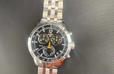 Эффектное чёрно-серебристое исполнение модели делает её идеальным вариантом для дополнения любого образа. Спортивный хронографХронографФункция позволяет измерять отрезки времени с особой точностью: часы, минуты, секунды. Верным признаком хронографа является наличие на циферблате 3 дополнительных окошек-счётчиков. обладает водонепроницаемостью при давлении 20 бар на глубине 200 метров, часы подходят для плавания и дайвинга. Кварцевый калибр ETA G10.211. Хирургическая сталь 316 L. Завинчивающаяся заводная головка и задняя крышка. Секундомер, тахиметрТахиметрРазмеченная шкала, располагается на ободке или безеле часов. Тахиметр позволяет рассчитать скорость на определённом участке пути, расстояние измеряется в километрах или милях., апертура даты. Габариты: 43 x 42 x 12 мм.