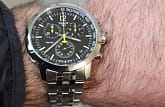 Мужские швейцарские часы представляют собой высококачественный аксессуар в спортивном стиле, ярко-желтая секундная стрелка и стрелки счётчиков придают аксессуару особую привлекательность.