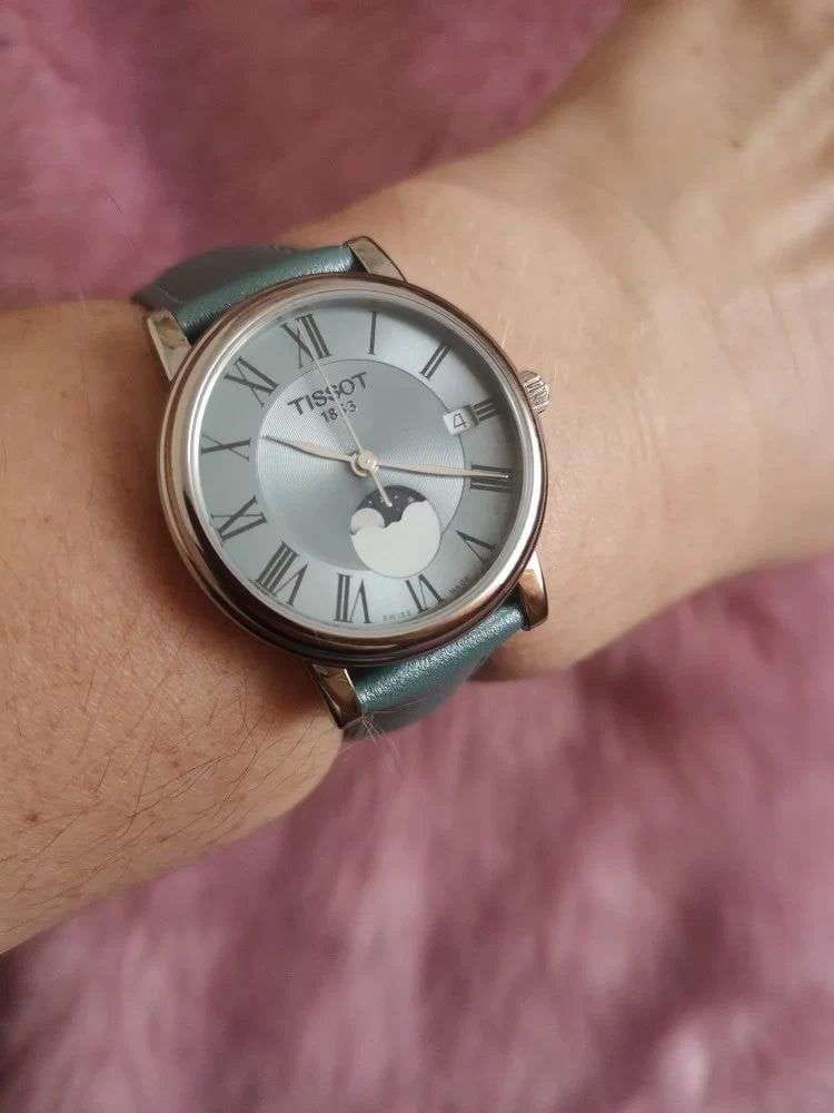 Женские швейцарские часы Tissot Carson Premium Lady Moonphase T122.223.16.353.00, кварцевый высокоточный механизм F05.841 с индикатором заряда батареи EOL.