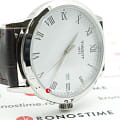 Модель отличается крупным корпусом из нержавеющей стали 316L. Швейцарский кварцевый калибр ETA F06.115 высоко ценится за безупречную точность хода. Сапфировое стекло отличается 100% устойчивостью к царапинам. Корпус часов изготовлен из стали с антикоррозийными свойствами. Ремешок из натуральной кожи. На метке 3 часов размещена апертура даты. Водостойкость - 5 бар.