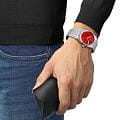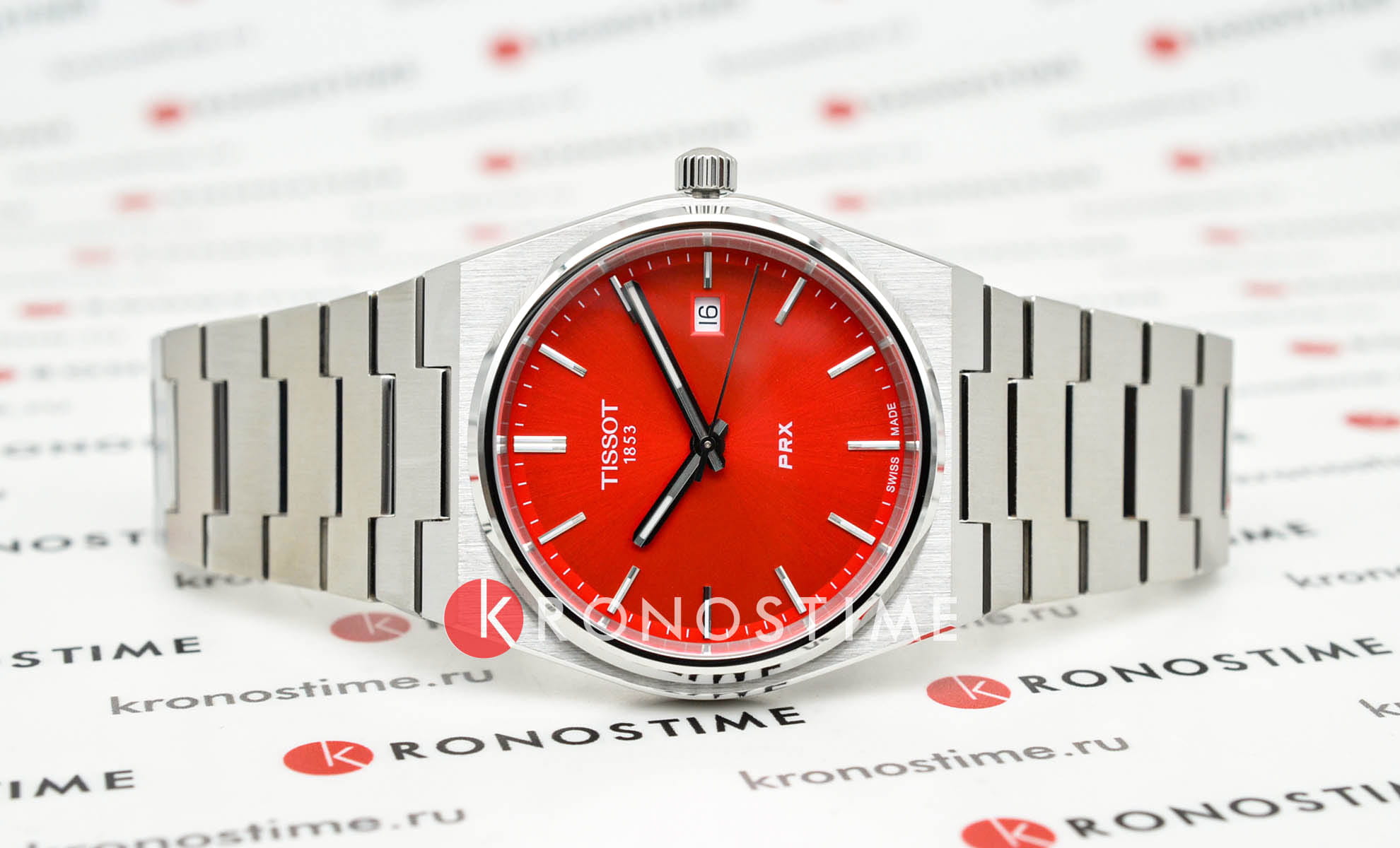 Мужские часы Tissot PRX Quartz 40 мм T137.410.11.421.00 выполнены в классическом круглом корпусе диаметром 40 мм из нержавеющей стали 316L, что обеспечивает высокую прочность и устойчивость к внешним воздействиям. Модель оснащена кварцевым механизмом с функцией индикации окончания срока службы батареи EOLEOLПредставляет собой систему, уведомляющую владельца часов о необходимости замены элемента питания. За 2 недели до полного разряда батарейки секундная стрелка перестаёт ходить чётко и начинает перепрыгивать на 3-4 деления., питание от батарейки типа Renata 371. Это гарантирует точность хода и минимальное обслуживание. Циферблат красного цвета дополнен индексами, а также стрелками и метками с люминесцентным покрытием Super-LumiNova® люминесцентным покрытиемЛюминесцентное покрытиеПозволяет считывать показания времени в темноте. Производители наносят на стрелки, часовые индексы, безель или поверхность циферблата светонакопительный состав, дающий холодное свечение. для лучшей читаемости в темноте. Функция отображения даты находится на 3 часах, что делает её легко доступной. Защиту циферблата обеспечивает сапфировое стекло сапфировое стеклоСапфировое стеклоПрочный и надёжный материал из кристалла сапфира синтетического происхождения, характеризующийся особой твёрдостью и устойчивостью к царапинам и повреждениям. с антибликовым покрытием антибликовым покрытиемАнтибликовое покрытиеСлой оксида металла в 0,13-0,3 микрон, благодаря которому стекло часов не бликует и не отражает свет. Антибликовое покрытие уменьшает отражение света в 10 раз, обеспечивая отличную читаемость показателей циферблата., защищающее от царапин и улучшающее восприятие информации. Водозащита позволяет использовать часы в повседневных условиях без риска повреждения от случайных брызг воды. Часы установлены на металлический браслет из нержавеющей стали 316L с застёжкой-бабочкой с кнопками застёжка-бабочка с кнопкамиЗастёжка "бабочка"Такой вид застёжки дополняется предохранителями, помогающими избежать случайного раскрытия браслета. Обладают изящным исполнением. , обеспечивающей комфорт и надёжную фиксацию на запястье. Браслет можно быстро заменить благодаря системе быстросъёмных звеньев. Часы являются сочетанием швейцарского качества, технологичности и современного дизайна для уверенных в себе мужчин.