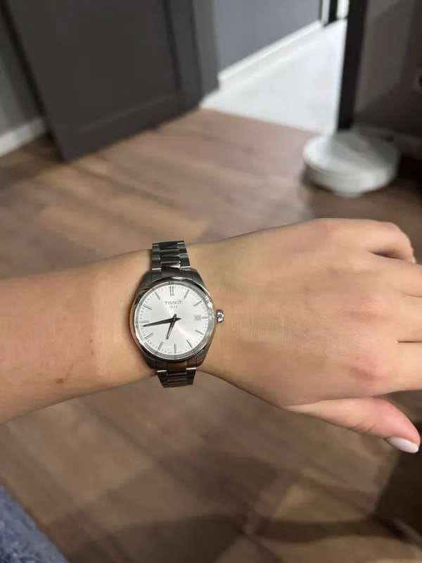 Женские швейцарские часы Tissot PR 100 T150.210.11.031.00, кварцевый механизм с высокой точностью. Сапфировое стеклоСапфировое стеклоПрочный и надёжный материал из кристалла сапфира синтетического происхождения, характеризующийся особой твёрдостью и устойчивостью к царапинам и повреждениям. устойчивое к появлению царапин, обладающее высокой прозрачностью. Корпус часов изготовлен из нержавеющей стали. Стрелки с люминесцентным покрытиемЛюминесцентное покрытиеПозволяет считывать показания времени в темноте. Производители наносят на стрелки, часовые индексы, безель или поверхность циферблата светонакопительный состав, дающий холодное свечение.. Окошко даты в положении 3 часов. Класс водозащиты: 100 метров, позволит плавать, нырять и заниматься другими водными видами спорта. Стальной браслет на застёжке-бабочке с кнопкамиЗастёжка "бабочка"Такой вид застёжки дополняется предохранителями, помогающими избежать случайного раскрытия браслета. Обладают изящным исполнением. .