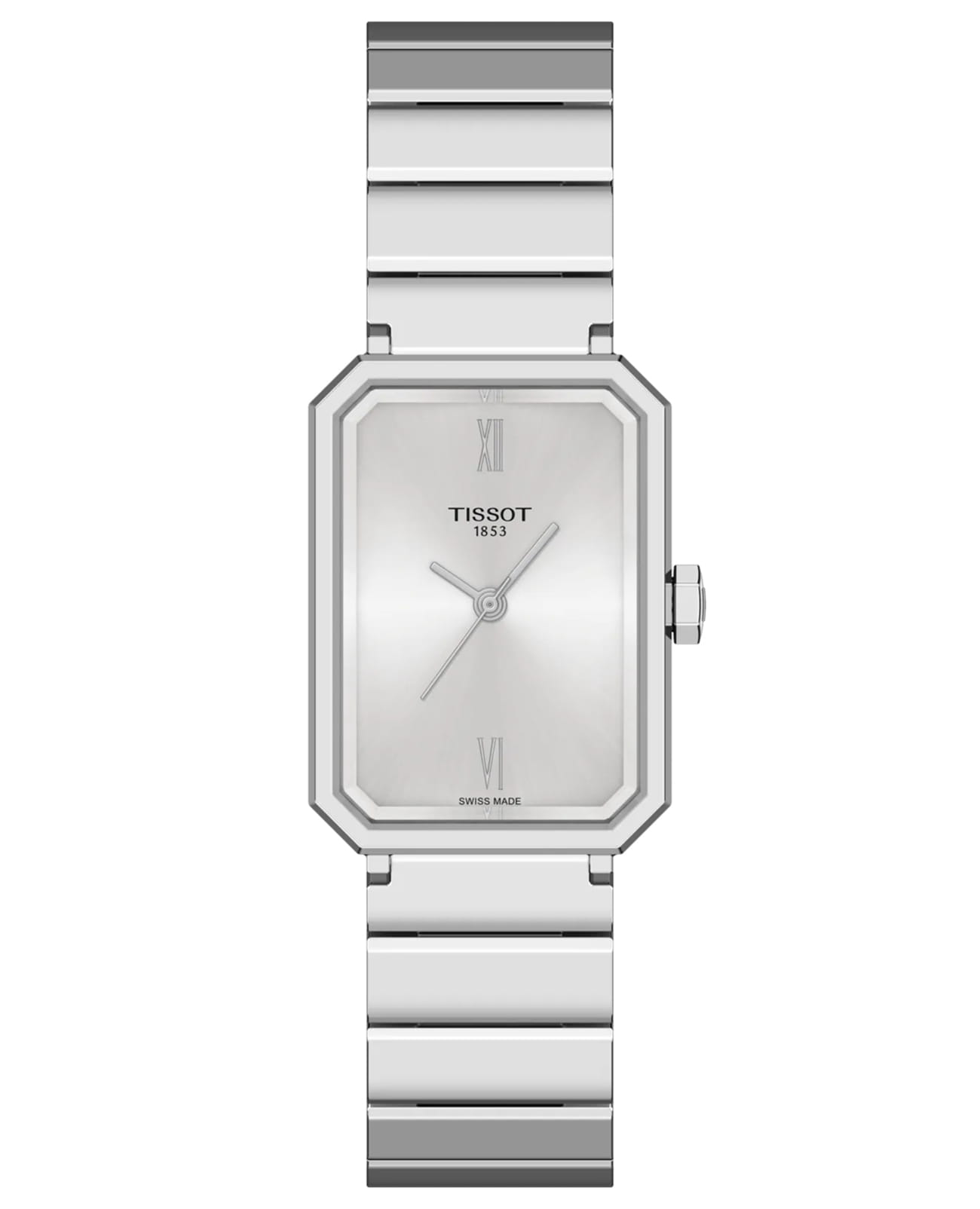 Женские кварцевые часы Tissot — это элегантный аксессуар, вдохновлённый стилем ар-деко 1920-х годов. Модель SRV сочетает геометрические формы и ретро-эстетику с современной технологией. Корпус прямоугольной формы размером 30×21,8 мм выполнен из нержавеющей стали 316L. Циферблат серебристого цвета оформлен римскими цифрами на позициях 12 и 6 часов. Циферблат защищён сапфировым стекломСапфировое стеклоПрочный и надёжный материал из кристалла сапфира синтетического происхождения, характеризующийся особой твёрдостью и устойчивостью к царапинам и повреждениям. с фасетированной огранкой, повторяющей форму корпуса. Часы оснащены стальным браслетом серого цвета на застёжке «бабочка» с кнопкамиЗастёжка "бабочка"Такой вид застёжки дополняется предохранителями, помогающими избежать случайного раскрытия браслета. Обладают изящным исполнением. со системой быстрой замены ремешка. Водонепроницаемость 50 м позволяет использовать часы в повседневных условиях. Идеальный выбор для тех, кто ценит стиль, наследие и швейцарское качество.