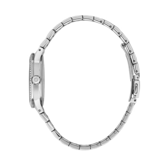 Итальянские женские часы Trussardi T-Essenzat R2453172505 - это стильный женский аксессуар, который сочетает элегантный дизайн и практичность. Корпус выполнен из нержавеющей стали с безелемБезельВнешний ободок, закрепляющий стекло. В спортивных часах так называется поворотное кольцо с делениями на циферблате, выполняет роль таймера – замеряет отрезки времени на шкале. Неподвижный безель – элемент декора. Однонаправленно вращающийся безель на дайверских часах позволяет фиксировать моменты погружения и выныривания на поверхность. с кристаллами , что обеспечивает долговечность и утончённый внешний вид. Надежное минеральное стеклоМинеральное стеклоМинеральное стекло представляет собой искусственно выращенный минерал кварца. Такое стекло отличается особой устойчивостью к повреждениям и царапинам. Уступает по некоторым качествам сапфировому стеклу. защищает циферблат от царапин и обеспечивает долговечность. Модель оснащена кварцевым механизмом, обеспечивающим высокую точность хода. Браслет из нержавеющей стали на раскладной застёжкеРаскладная застёжкаТакой тип застёжки используется только на браслетах из металла. Она никогда не раскрывается полностью, происходит разделение на 2 и более частей. Раскладывающая застёжка снизит вероятность потери часов к минимуму. обеспечивает комфортное ношение. Стрелки с люминесцентным покрытиемЛюминесцентное покрытиеПозволяет считывать показания времени в темноте. Производители наносят на стрелки, часовые индексы, безель или поверхность циферблата светонакопительный состав, дающий холодное свечение.. Водозащита 50 метров позволит защитить корпус от случайных брызг или капель дождя. Эта модель – отличный выбор для тех, кто ищет сочетание стиля, качества и функциональности. Часы станут не только полезным аксессуаром, но и выразительным элементом вашего имиджа.