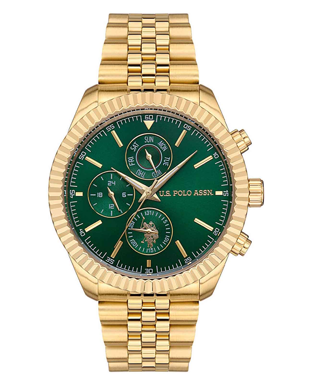 Мужские часы U.S. Polo Assn. Crossing USPA1054-05, кварцевый механизм с высокой точностью. Минеральное стеклоМинеральное стеклоМинеральное стекло представляет собой искусственно выращенный минерал кварца. Такое стекло отличается особой устойчивостью к повреждениям и царапинам. Уступает по некоторым качествам сапфировому стеклу. устойчивое к появлению царапин, обладающее высокой прозрачностью. Корпус изготовлен из нержавеющей стали с IP-покрытиемIP-покрытиеМетод ионного напыления. Демонстрирует повышенную устойчивость к истиранию, окислению и химическим веществам. Под воздействием высокого давления и температуры около 1500°C молекулы металла надёжно соединяются с частицами корпуса часов.. Центральные часовая, минутная и секундная стрелки. Индикация даты и дня недели. 12/24х часовой формат времени. Стрелки с люминесцентным покрытиемЛюминесцентное покрытиеПозволяет считывать показания времени в темноте. Производители наносят на стрелки, часовые индексы, безель или поверхность циферблата светонакопительный состав, дающий холодное свечение.. Класс водозащиты: 50 метров, позволит защитить корпус от случайных брызг или капель дождя. Стальной браслет с IP-покрытиемIP-покрытиеМетод ионного напыления. Демонстрирует повышенную устойчивость к истиранию, окислению и химическим веществам. Под воздействием высокого давления и температуры около 1500°C молекулы металла надёжно соединяются с частицами корпуса часов. на раскладной застёжкеРаскладная застёжкаТакой тип застёжки используется только на браслетах из металла. Она никогда не раскрывается полностью, происходит разделение на 2 и более частей. Раскладывающая застёжка снизит вероятность потери часов к минимуму..
