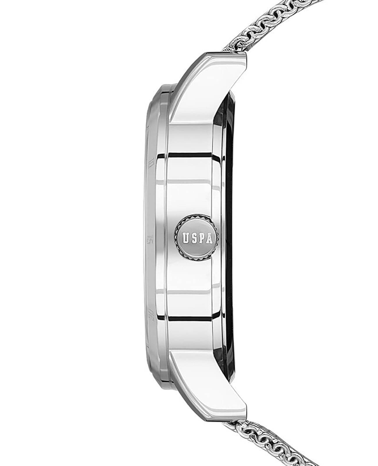 Мужские часы с тахиметромТахиметрРазмеченная шкала, располагается на ободке или безеле часов. Тахиметр позволяет рассчитать скорость на определённом участке пути, расстояние измеряется в километрах или милях. U.S. Polo Assn Fundamental USPA1075-01, кварцевый механизм с высокой точностью. Минеральное стеклоМинеральное стеклоМинеральное стекло представляет собой искусственно выращенный минерал кварца. Такое стекло отличается особой устойчивостью к повреждениям и царапинам. Уступает по некоторым качествам сапфировому стеклу. устойчивое к появлению царапин, обладающее высокой прозрачностью. Корпус изготовлен из нержавеющей стали. Центральные часовая, минутная и секундная стрелки. 24-х часовой формат времени, окошко даты и дня недели вынесены на отдельный циферблат. Стрелки с люминесцентным покрытиемЛюминесцентное покрытиеПозволяет считывать показания времени в темноте. Производители наносят на стрелки, часовые индексы, безель или поверхность циферблата светонакопительный состав, дающий холодное свечение.. Класс водозащиты: 50 метров, позволит защитить корпус от случайных брызг или капель дождя. Стальной браслет миланского плетения на раскладном замкеРаскладной замокДанный вариант застежки используется только на часах с металлическим браслетом. Отличительная особенность такого крепления в том, что длина браслета становится универсальной и вы можете самостоятельно отрегулировать нужный вам размер – застежка просто двигается по браслету часов..