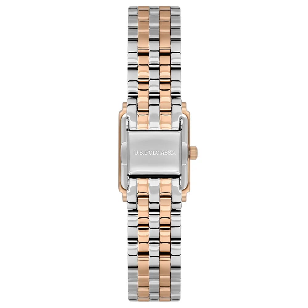 Женские наручные часы U.S. Polo Assn. Stile USPA2107-03 — это стильный и лаконичный аксессуар, выполненный в форме квадрата. Модель изготовлена из стали с IP-покрытиемIP-покрытиеМетод ионного напыления. Демонстрирует повышенную устойчивость к истиранию, окислению и химическим веществам. Под воздействием высокого давления и температуры около 1500°C молекулы металла надёжно соединяются с частицами корпуса часов., придающий благородный внешний вид и устойчивость к царапинам. Циферблат с кристаллами дополнен лаконичными центральными часовой и минутной стрелками. Защиту циферблата обеспечивает минеральное стеклоМинеральное стеклоМинеральное стекло представляет собой искусственно выращенный минерал кварца. Такое стекло отличается особой устойчивостью к повреждениям и царапинам. Уступает по некоторым качествам сапфировому стеклу., устойчивое к мелким повреждениям. Часы оснащены кварцевым механизмом, гарантирующим точность и минимальное обслуживание. Водонепроницаемость 3 АТМ позволяет использовать часы в повседневных условиях — при мытье рук или под лёгким дождём. Браслет выполнен из стали с IP-покрытиемIP-покрытиеМетод ионного напыления. Демонстрирует повышенную устойчивость к истиранию, окислению и химическим веществам. Под воздействием высокого давления и температуры около 1500°C молекулы металла надёжно соединяются с частицами корпуса часов. и оснащён раскладной застёжкойРаскладная застёжкаТакой тип застёжки используется только на браслетах из металла. Она никогда не раскрывается полностью, происходит разделение на 2 и более частей. Раскладывающая застёжка снизит вероятность потери часов к минимуму., обеспечивающей комфорт и уверенную фиксацию на запястье. Толщина корпуса составляет 7 мм, а его размер 19 мм, что делает часы компактными и удобными в носке. Эти часы станут универсальным аксессуаром для уверенных в себе женщин, которые ценят сочетание стиля, качества и эстетики — идеальный выбор для повседневного образа и торжественных случаев.