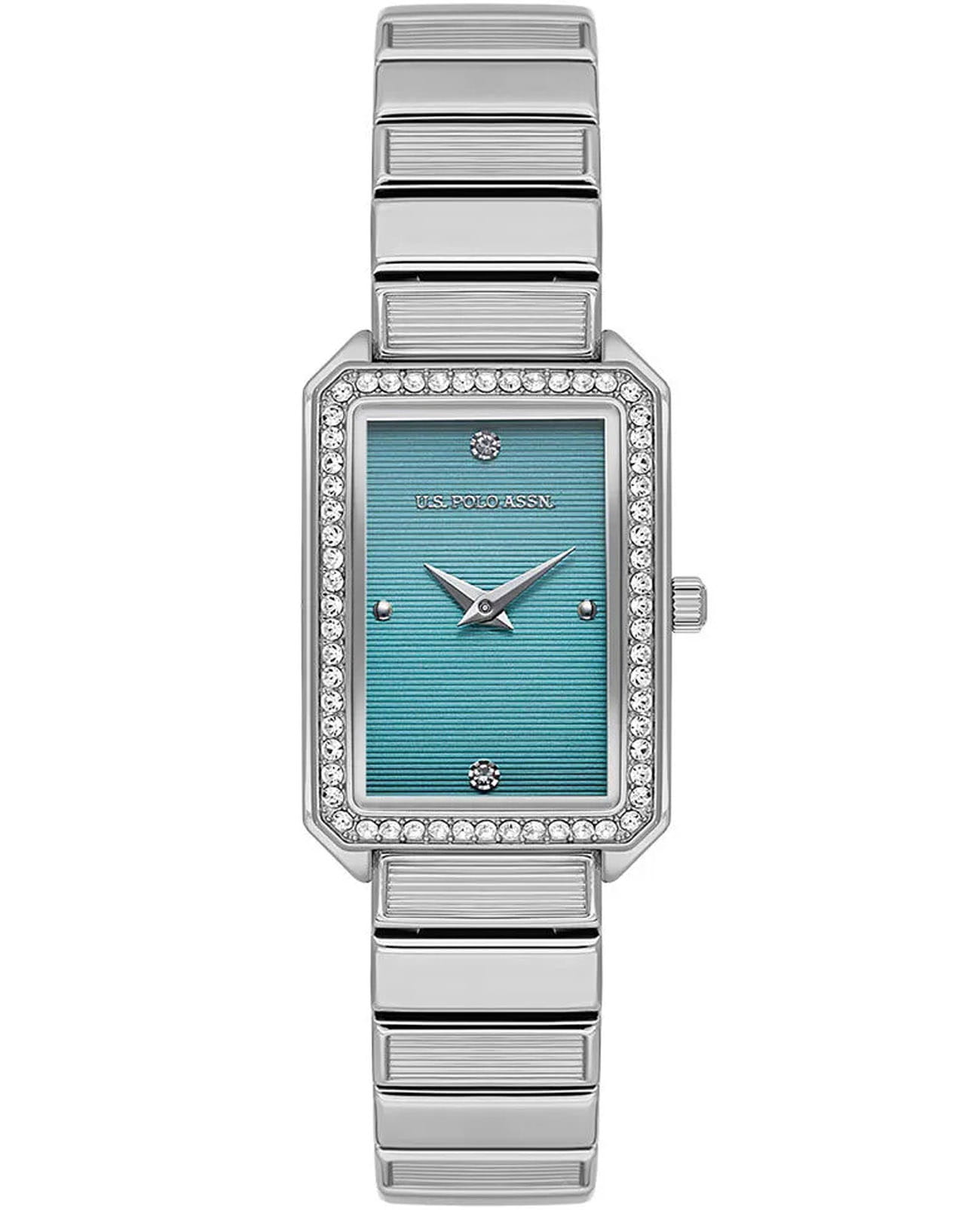 Женские наручные часы U.S. Polo Assn. Stile USPA2108-02 — это стильный и лаконичный аксессуар, выполненный в форме квадрата. Модель изготовлена из стали серебристого цвета, а безельБезельВнешний ободок, закрепляющий стекло. В спортивных часах так называется поворотное кольцо с делениями на циферблате, выполняет роль таймера – замеряет отрезки времени на шкале. Неподвижный безель – элемент декора. Однонаправленно вращающийся безель на дайверских часах позволяет фиксировать моменты погружения и выныривания на поверхность. украшен изысканными кристаллами, придающими часам роскошный вид. Циферблат с лаконичными центральными часовой и минутной стрелками. Защиту циферблата обеспечивает минеральное стеклоМинеральное стеклоМинеральное стекло представляет собой искусственно выращенный минерал кварца. Такое стекло отличается особой устойчивостью к повреждениям и царапинам. Уступает по некоторым качествам сапфировому стеклу., устойчивое к мелким повреждениям. Часы оснащены кварцевым механизмом, гарантирующим точность и минимальное обслуживание. Водонепроницаемость 3 АТМ позволяет использовать часы в повседневных условиях — при мытье рук или под лёгким дождём. Браслет выполнен из стали и оснащён раскладной застёжкойРаскладная застёжкаТакой тип застёжки используется только на браслетах из металла. Она никогда не раскрывается полностью, происходит разделение на 2 и более частей. Раскладывающая застёжка снизит вероятность потери часов к минимуму., обеспечивающей комфорт и уверенную фиксацию на запястье. Толщина корпуса составляет 8 мм, а его размер 23 мм, что делает часы компактными и удобными в носке. Эти часы станут универсальным аксессуаром для уверенных в себе женщин, которые ценят сочетание стиля, качества и эстетики — идеальный выбор для повседневного образа и торжественных случаев.