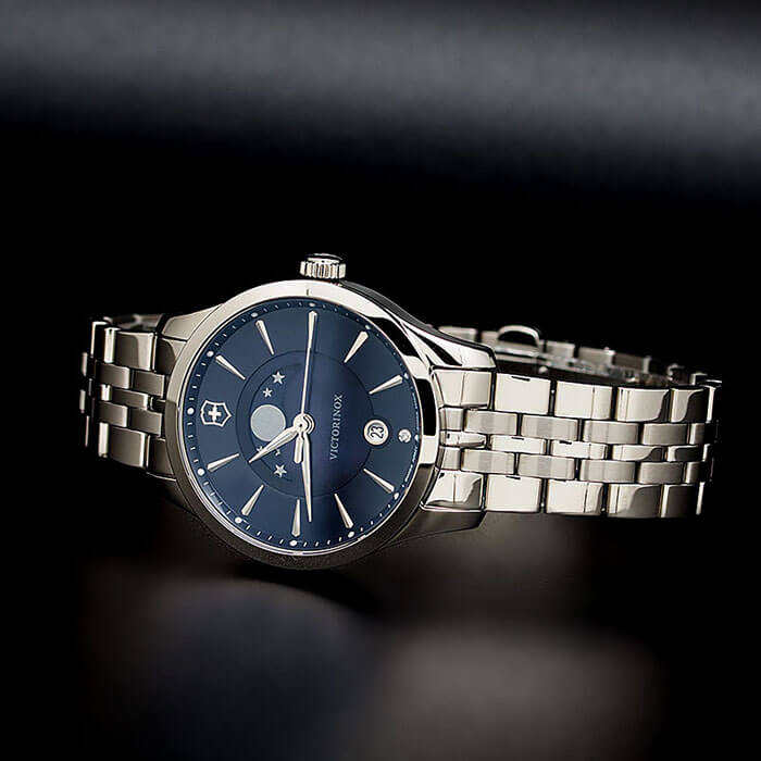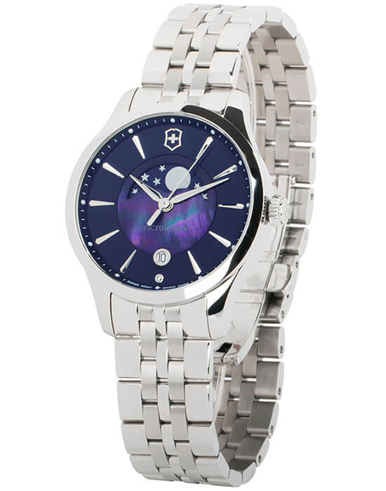 Женские швейцарские часы с сапфировым стеклом и бриллиантом Victorinox 241752, кварцевый механизм с высокой точностью. Сапфировое стекло устойчивое к появлению царапин, обладающее высокой прозрачностью. Класс водозащиты: 100 метров, позволит плавать, нырять и заниматься другими водными видами спорта. Корпус часов изготовлен из стали, цвета.