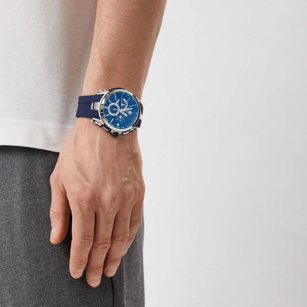 Мужские кварцевые часы-хронографХронографФункция позволяет измерять отрезки времени с особой точностью: часы, минуты, секунды. Верным признаком хронографа является наличие на циферблате 3 дополнительных окошек-счётчиков. с секундомеромСекундомерСекундоме́р — прибор, способный измерять интервалы времени с точностью до долей секунды. Wainer WA.16910-I сочетает элегантный дизайн и высокое качество исполнения. Корпус выполнен из нержавеющей стали с частичным PVD-покрытиемPVDУльтратонкое покрытие наносится в технике вакуумного напыления, сочетает в себе нитрид титана особой прочности со слоем золота или оксида хрома. Несёт в себе декоративную или защитную функцию., диаметром 47 мм и толщиной 12 мм, обеспечивает прочность и долговечность. Циферблат с метками в виде штрихов выполнен по технологии Sunray (солнечные лучи) и украшен фирменным логотипом Wainer и дополнен тахиметромТахиметрРазмеченная шкала, располагается на ободке или безеле часов. Тахиметр позволяет рассчитать скорость на определённом участке пути, расстояние измеряется в километрах или милях.. Сапфировое стеклоСапфировое стеклоПрочный и надёжный материал из кристалла сапфира синтетического происхождения, характеризующийся особой твёрдостью и устойчивостью к царапинам и повреждениям. защищает дисплей от царапин и механических повреждений. Окошко даты находится в положении 6 часов. Стрелки с люминесцентным покрытиемЛюминесцентное покрытиеПозволяет считывать показания времени в темноте. Производители наносят на стрелки, часовые индексы, безель или поверхность циферблата светонакопительный состав, дающий холодное свечение., улучшая читаемость в условиях недостаточного освещения. Силиконовый ремешок на стандартной застёжке обеспечивает комфортное ношение. Водонепроницаемость до 100 метров делает модель подходящей для плавания и активного образа жизни. Wainer — это стильный и надежный аксессуар для тех, кто ценит швейцарское качество и современные технологии.