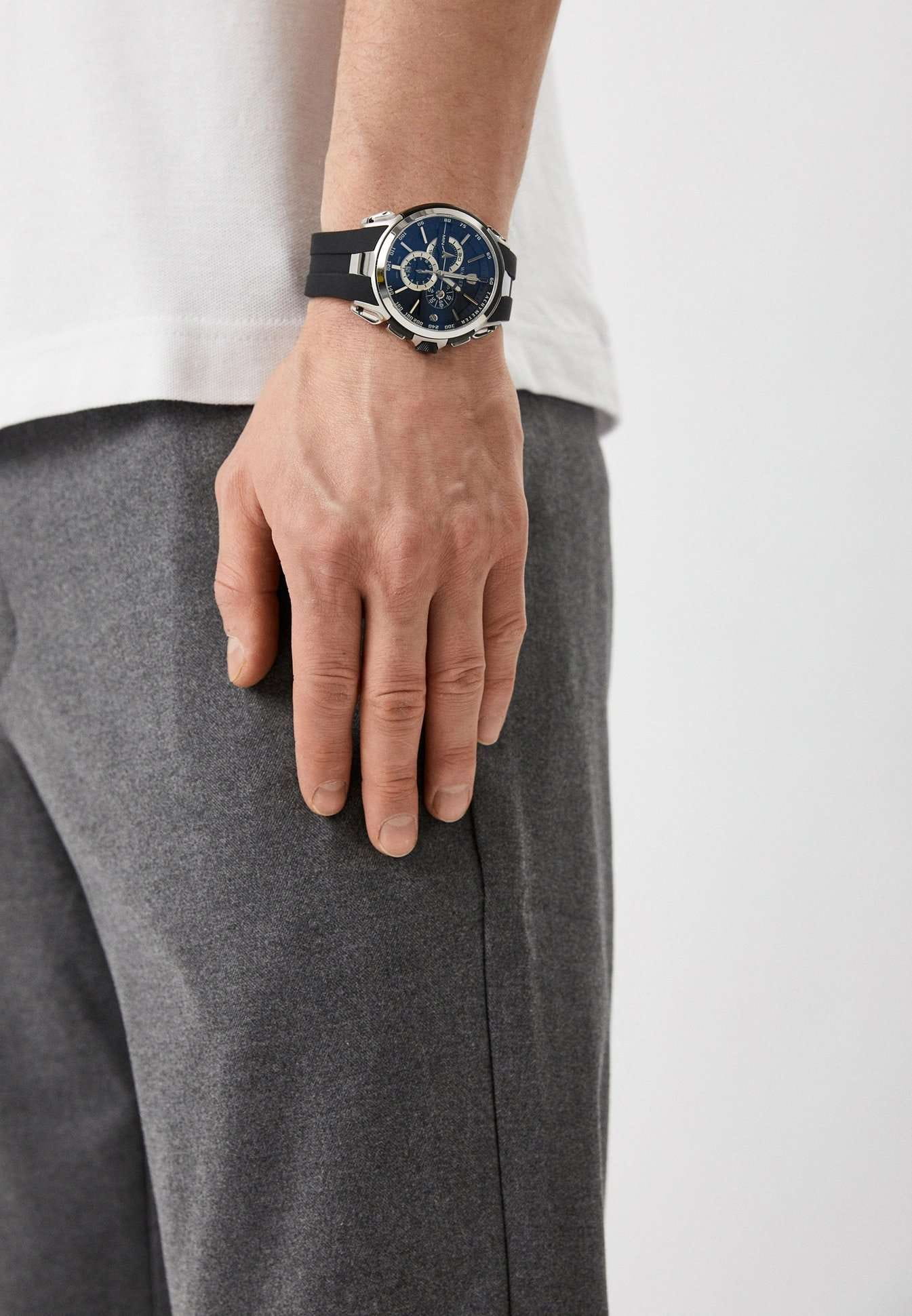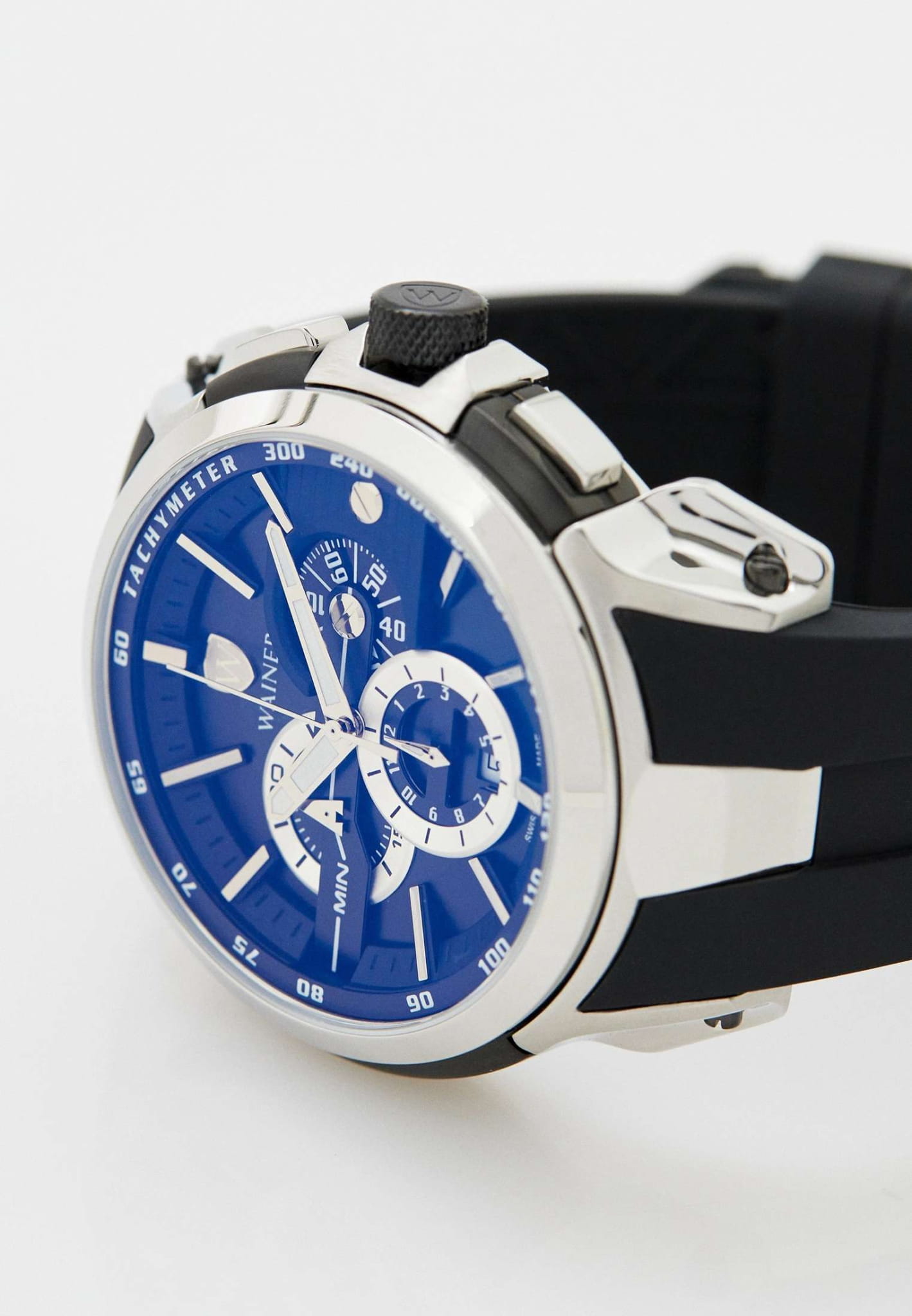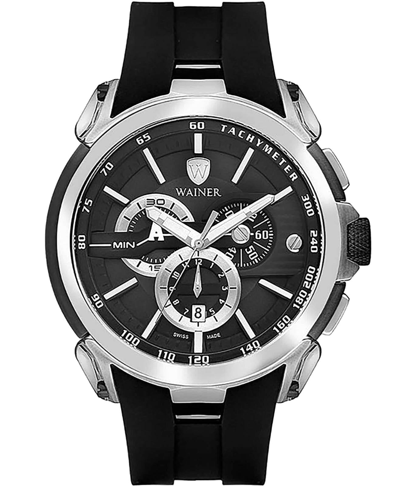 Мужские кварцевые часы-хронографХронографФункция позволяет измерять отрезки времени с особой точностью: часы, минуты, секунды. Верным признаком хронографа является наличие на циферблате 3 дополнительных окошек-счётчиков. с секундомеромСекундомерСекундоме́р — прибор, способный измерять интервалы времени с точностью до долей секунды. Wainer WA.16910-J сочетает элегантный дизайн и высокое качество исполнения. Корпус выполнен из нержавеющей стали с частичным PVD-покрытиемPVDУльтратонкое покрытие наносится в технике вакуумного напыления, сочетает в себе нитрид титана особой прочности со слоем золота или оксида хрома. Несёт в себе декоративную или защитную функцию., диаметром 47 мм и толщиной 13 мм, обеспечивает прочность и долговечность. Циферблат с метками в виде штрихов выполнен по технологии Sunray (солнечные лучи) и украшен фирменным логотипом Wainer и дополнен тахиметромТахиметрРазмеченная шкала, располагается на ободке или безеле часов. Тахиметр позволяет рассчитать скорость на определённом участке пути, расстояние измеряется в километрах или милях.. Сапфировое стеклоСапфировое стеклоПрочный и надёжный материал из кристалла сапфира синтетического происхождения, характеризующийся особой твёрдостью и устойчивостью к царапинам и повреждениям. защищает дисплей от царапин и механических повреждений. Окошко даты находится в положении 6 часов. Стрелки с люминесцентным покрытиемЛюминесцентное покрытиеПозволяет считывать показания времени в темноте. Производители наносят на стрелки, часовые индексы, безель или поверхность циферблата светонакопительный состав, дающий холодное свечение., улучшая читаемость в условиях недостаточного освещения. Силиконовый ремешок на стандартной застёжке обеспечивает комфортное ношение. Водонепроницаемость до 100 метров делает модель подходящей для плавания и активного образа жизни. Wainer — это стильный и надежный аксессуар для тех, кто ценит швейцарское качество и современные технологии.
