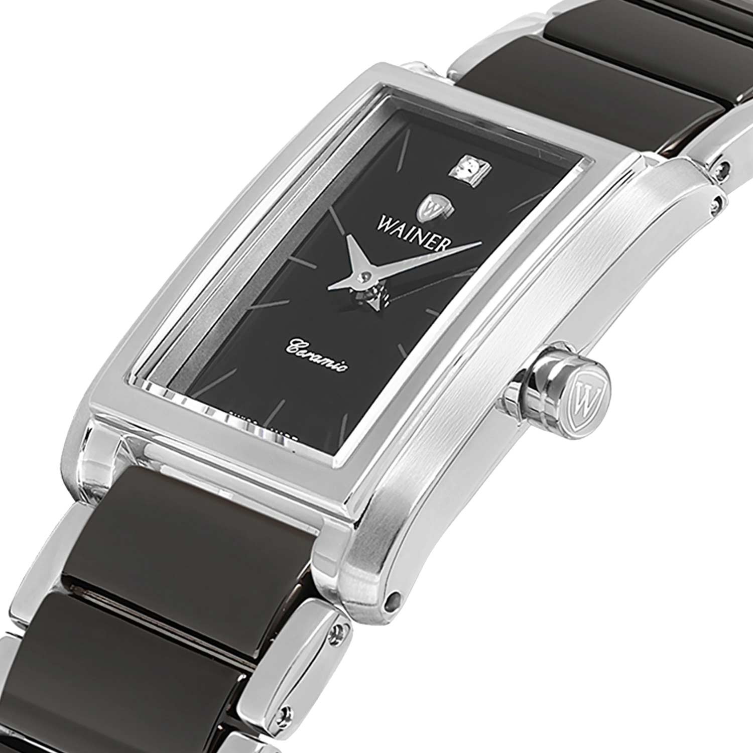 Швейцарские женские кварцевые часы Wainer WA.18060-C станут элегантным дополнением любого образа. Прямоугольный корпус из нержавеющей стали 316L размером 22х24.5 мм и толщиной 8 мм защищен прочным сапфировым стекломСапфировое стеклоПрочный и надёжный материал из кристалла сапфира синтетического происхождения, характеризующийся особой твёрдостью и устойчивостью к царапинам и повреждениям.. Циферблат с метками в виде штрихов украшен кристаллом в положении 12 часов, а заводная головка с фирменным логотипом добавляет модели особый шарм. Часы имеют класс водозащиты 30 метров, позволит защитить корпус от случайных брызг или капель дождя. Модель комплектуется стальным браслетом из нержавеющей стали 316L с керамическими вставками на раскладной застёжкеРаскладная застёжкаТакой тип застёжки используется только на браслетах из металла. Она никогда не раскрывается полностью, происходит разделение на 2 и более частей. Раскладывающая застёжка снизит вероятность потери часов к минимуму., длина браслета составляет 180 мм. Вес часов 88 грамм обеспечивает комфортное ношение в течение дня. Элегантный дизайн и надежное качество швейцарского производства делают эти часы превосходным выбором для современной женщины.