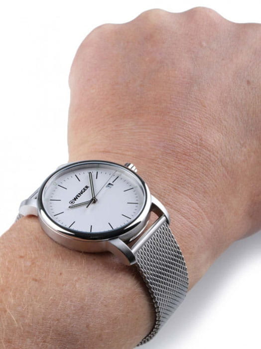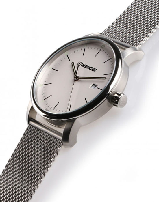 Швейцарские мужские часы в классическом стиле Wenger 01.1741.113, кварцевый механизм с высокой точностью. Класс водозащиты: 100 метров, позволит плавать, нырять и заниматься другими водными видами спорта. Корпус часов изготовлен из стали, цвета.